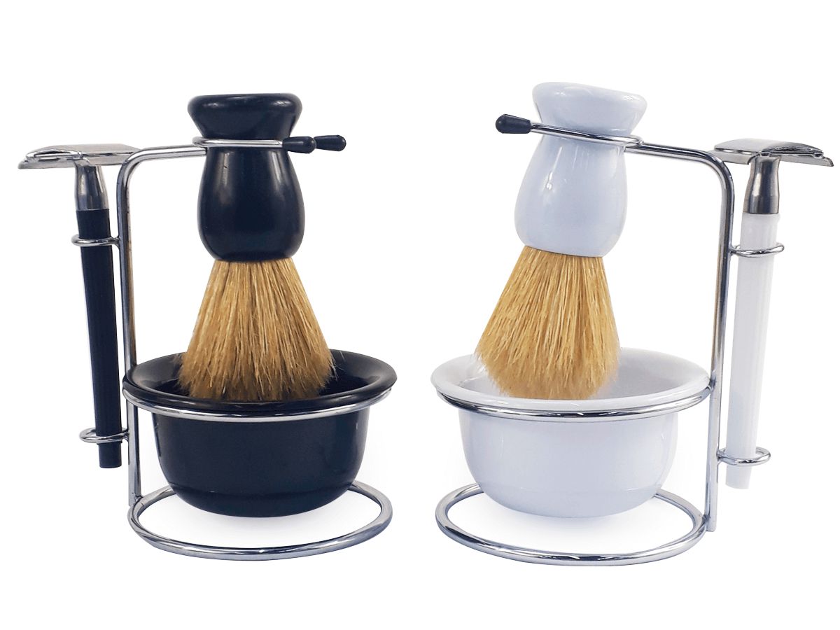 Este kit de barbear é ideal para você que gosta de fazer sua barba, acompanha uma tigela para mistura de espuma de barbear um suporte de metal um barbeador de metal e duas lâminas, além do uso pessoal também é um ótimo presente para seu pai, amigo, namorado.